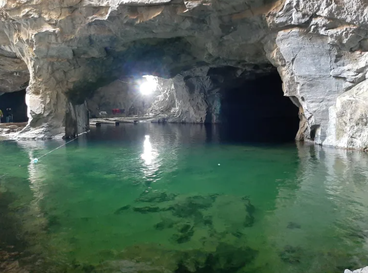 Assim, uma pedreira antiga desativada em 1995, suas paredes desenhadas pela explosão, dessa forma, torna a gruta atrativa.